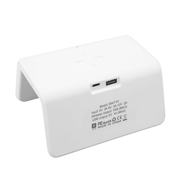 Функціональний годинник з бездротовою зарядкою 15W. Режим часу 12/24 год.