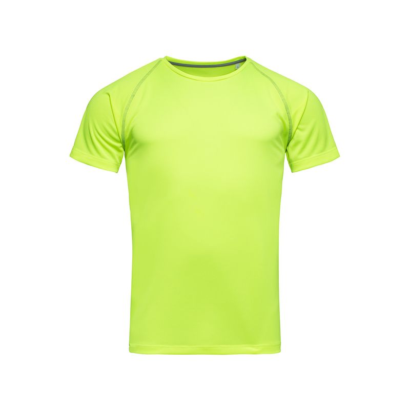 Чоловіча спортивна футболка зручного крою, з контрастними швами реглан, виконаними з швидковисихаючого, «дихаючого» функціонального сітчастого матеріалу з гладкою поверхнею. Еластичний матеріал, декоративна відстрочка, контрастні шви реглан (від шиї до пахви), рукава реглан, контрастна обробка горловини, бокові шви, маленька бірка з розміром з боку спини, етикетка з вказівками по догляду в бічному шві.