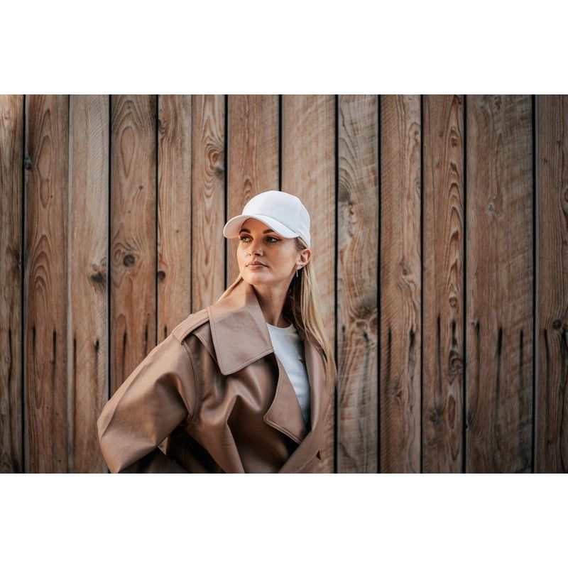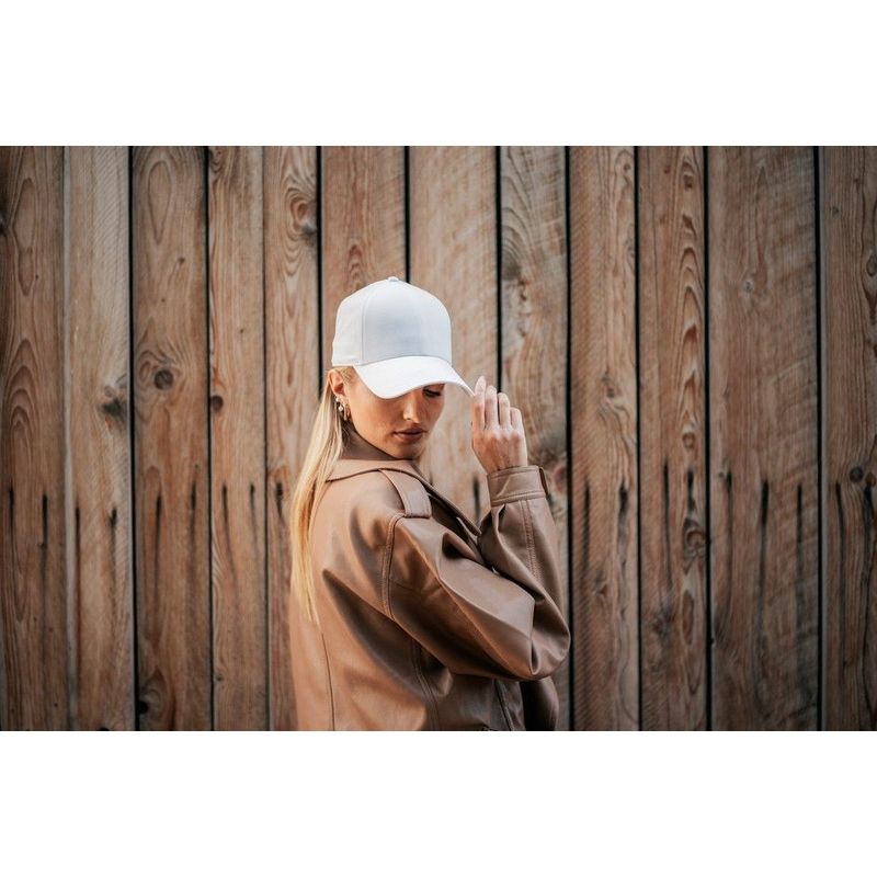 Застібка-снапбек м’яка, гнучка та зручна для регулювання, що гарантує комфортну посадку. Люверси оздоблені вишивкою в тон основного матеріалу. Щільність тканини становить 200 г/м², що забезпечує довговічність і комфорт навіть при інтенсивному використанні.