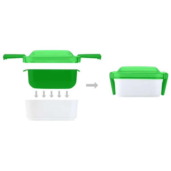 Має прозору кришку, яка герметично закривається з додатковим відділенням, де зберігається виделка+ложка (в комплекті металева ложка+виделка). Посудина на два відділення з високоякісної нержавіючої сталі 304 . Об'єм: 800 мл. Розмір 22,5 х 16 х 7 см. В подарунковій картонній коробці. Розмір індивідуальної коробки: 22,8 х 16,5 х 7,8 см. Метод нанесення: шовкодрук, тамподрук, уф-друк.
