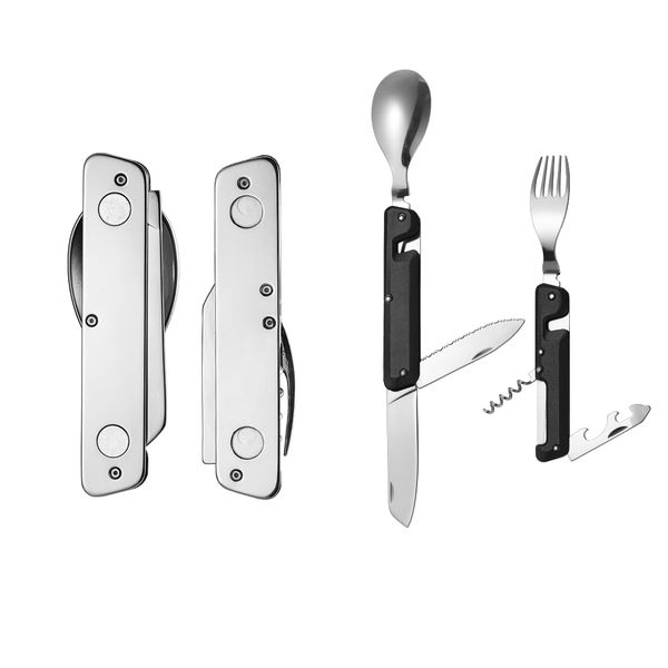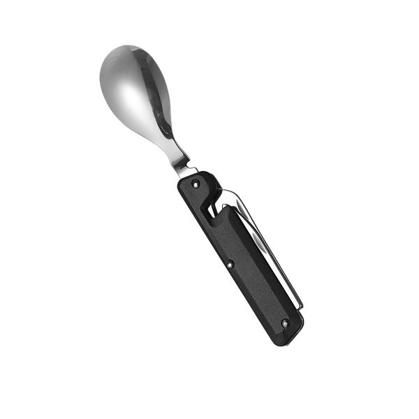 Легкий і зручний набір, виготовлений з комбінації нержавіючої сталі та алюмінію. Він ідеально підходить для кемпінгу та походів, його можна швидко і легко розділити на дві частини, щоб отримати окремі виделку та ніж з ложкою. Частини З’єднуються двома магнітними кліпсами.