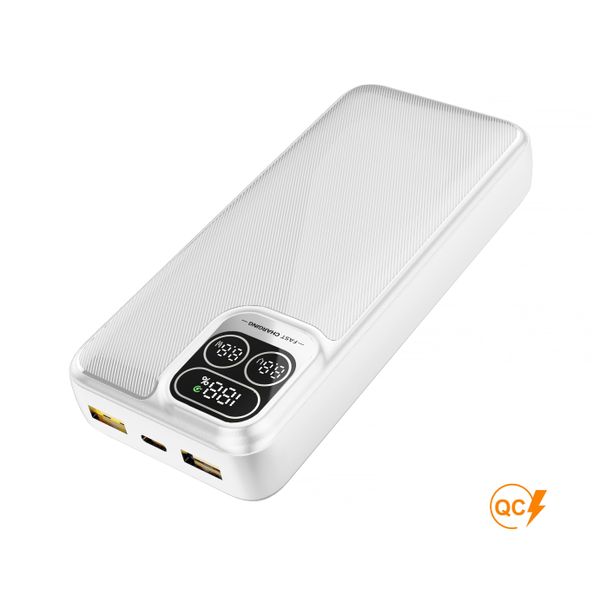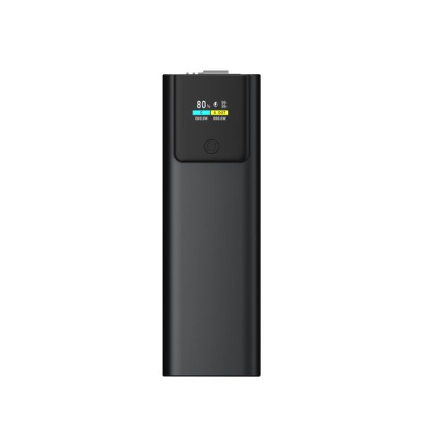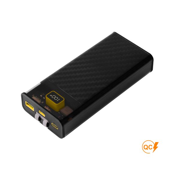 Акумулятор: літій-полімерний. Корпус пристрою алюмінієвий, що добре підходить для лазерного гравіювання. Має цифровий індикатор залишкового заряду. В комплекті кабель 26 см Type-C (швидкий заряд).