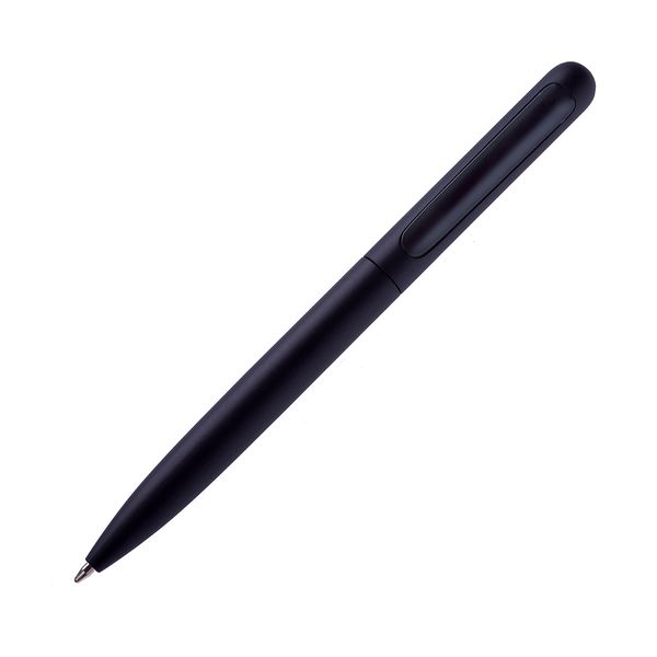 Ручка кулькова матова, металева. При включеній ручці кліп втягуеться спеціальним механізмом в корпус, щоб не можливо зачепити на кишеню, при виключеній ручці кліп виходить с корпусу. Ця система захистить ваші кишені від плям пасти зі стержня ручки. Стержень з синім чорнилом