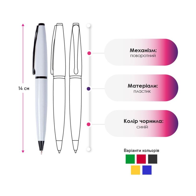 Quick viewсірийчорнийсинійбілийчервонийзелений Ручка кулькова металева London,TM Totobi Ціна35.12₴Вільний залишок: 0 шт. На складі: 0 шт. Артикул: 2014-06Бренд: TotobiНа складі: 35477Вільний залишок: 26853Обрати
