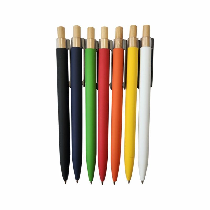 Корпус ручки виготовлений з алюмінію, зверху нанесене кольорове покриття Soft touch. Виріб має бамбукову кнопку.