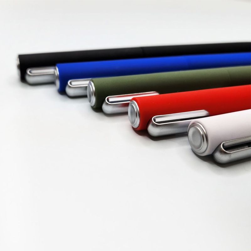 Ручка обладнана пластиковим затискачем сріблястого кольору. За допомогою затискача вона кріпиться в кишені рюкзака чи сумки.