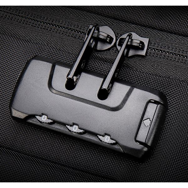 Рюкзак з відділенням для ноутбука 15,6” та  відділенням для ipad .  Тканина водонепроникний 100%  поліестер + PU, має USB Port, захистний кодовий  замок, великий відділ з еластичними ремінями для одягу та різні кармани-органайзери, прихована кишеня на лямці для карток, бокова термо-кишеня для пляшки, на задній спинці ремінь для валізи. Також рюкзак має крім вертикальної ручки горизонтальну і може трансформуватися в сумку, при цьому задні лямки ховаються в приховане відділленя.  Рюкзак можливо збільшити в обьемі за рахунок складеного відділення.