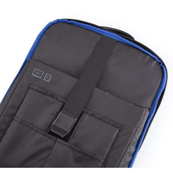 Рюкзак антизлодій для ноутбука 15,6” та планшету .Тканина водонепроникний 100% поліестер фібра + поліуретан, має USB Port, основний великий вітділ та різні кармани органайзери, дві бокові кишені, ремінь для валізи. Розмір 45Х30Х14. Нанесення шовкодрук, термоперенос.