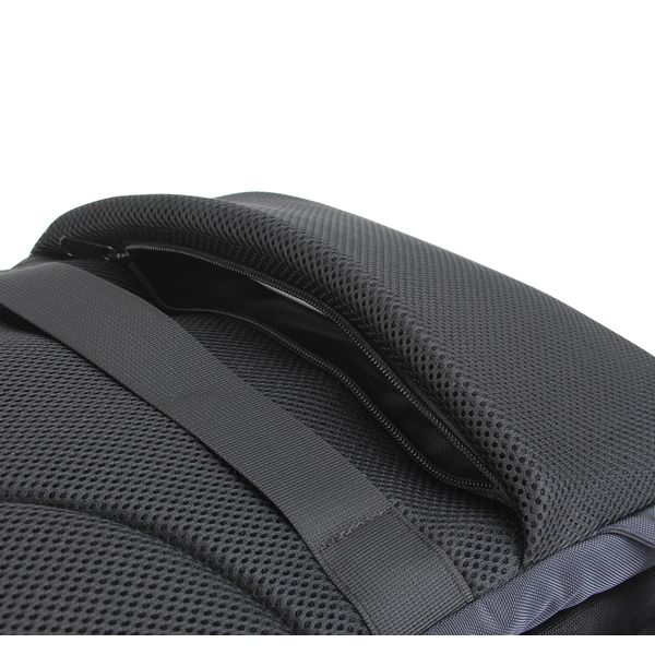 Рюкзак з окремим відділенням для ноутбука 15,6” .Тканина водонепроникний 100% поліестер, має USB + Audio Port, по бокам дві зручні кишені для пляшки з фіксуючим ремінцем або інших речей, багато великих вітділів та різні кармани органайзери, прихована кишеня на задній спинці та ремінь для валізи. Розмір 44Х31Х13. Нанесення шовкодрук, термоперенос