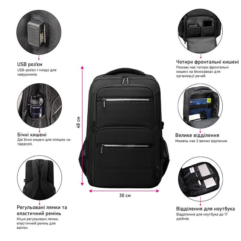 - Відділення для ноутбука до 17 дюймів.
