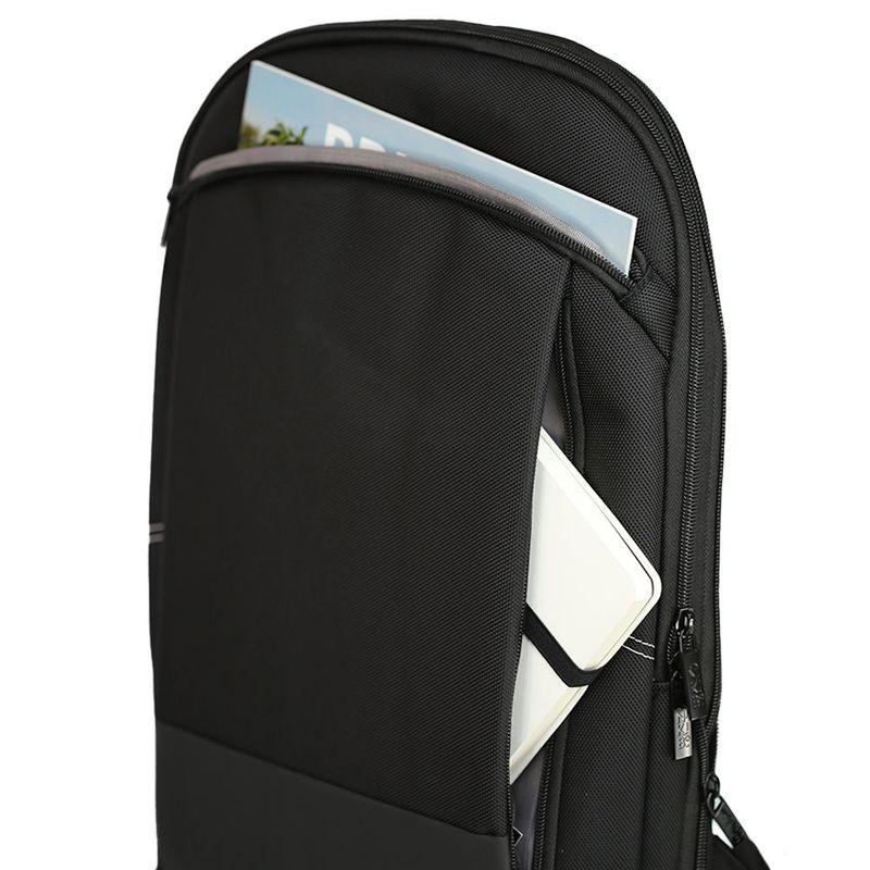 Модель має основне відділення з органайзером, передню кишеню з кількома блискавками та додаткову кишеню на спинці. По периметру вшита блискавка, яка дозволяє збільшувати або зменшувати об’єм. На одній із лямок є кишенька для карток.