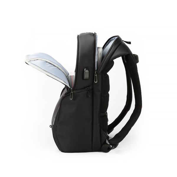 Рюкзак для ноутбука 15,6’’. Одне велике відділення, відділення для ноутбука, одна кишеня попереду. М’яка спинка та лямки з пасивною системою вентиляції. Ущільнена м’яка підкладка. Вбудований USB-порт для зарядки. Отвір для навушників. Світловідбиваючі елементи.