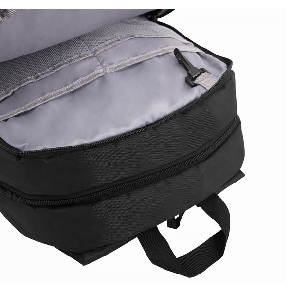 Рюкзак для ноутбука 15,6 дюймів. Одне велике відділення з органайзерами та карабіном для ключів, окреме відділення для ноутбука і окреме для документів, попереду 1 кишеня та 2 відкриті бокові кармани. Ущільнена м'яка підкладка