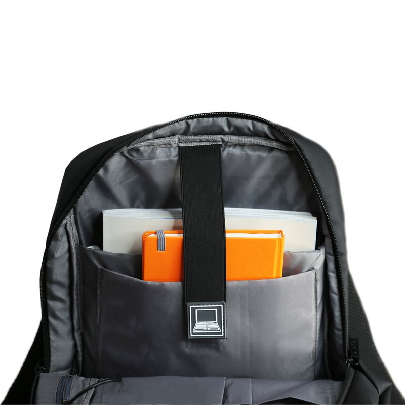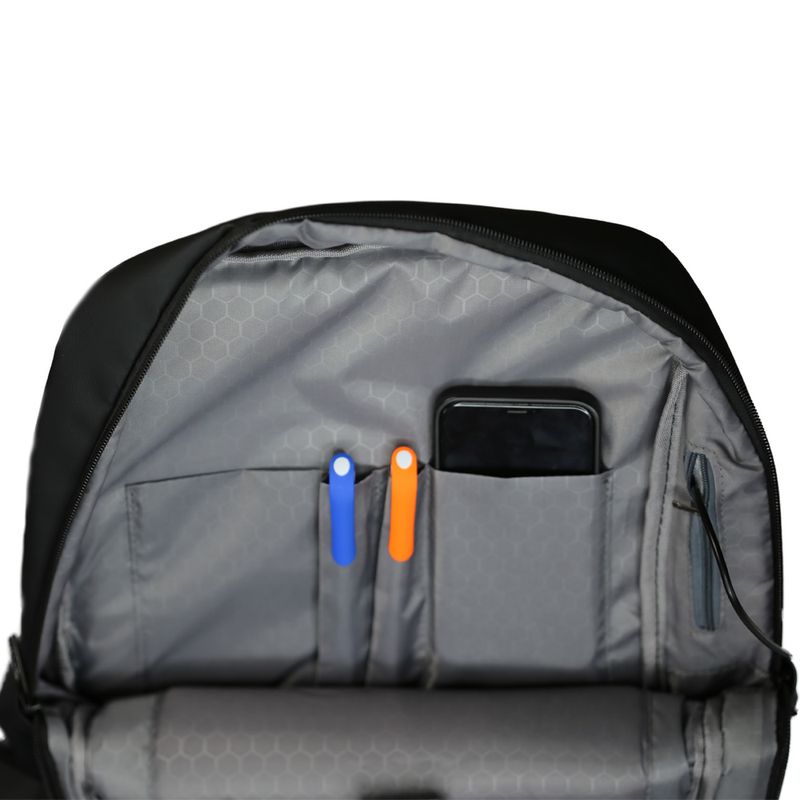 Дорожній рюкзак має продуману конструкцію та ідеальну внутрішню організацію. Основне відділення на блискавці достатньо просторе: всередині передбачено великі м’які кишені для ноутбука та планшета. Є додаткові кишені для смартфона, документів, книг, а також спеціальні відсіки для карток, окулярів та ручок. На передній частині рюкзака — дві зовнішні кишені на блискавках для швидкого доступу до найнеобхіднішого. дна кишеня зверху, друга посередині з планкою, яка приховує блискавку.