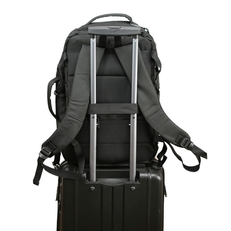 - Для зручного кріплення на валізу на спинці рюкзака передбачено еластичний ремінь.