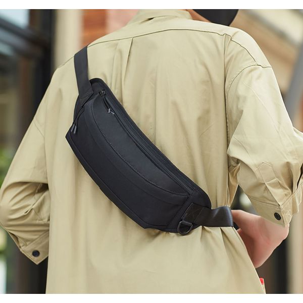 Сумка на пояс з великим основним відділенням, прихованою внутрішньою кишенею та з зовнішньою кишенею на блискавці. Водовідштовхуючий матеріал, 100% поліестер