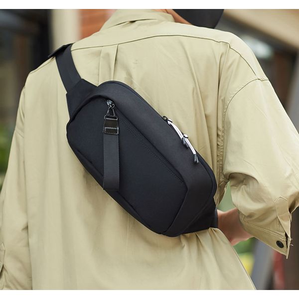 Сумка на пояс з великим основним відділенням, прихованою внутрішньою кишенею та з зовнішньою кишенею на блискавці. Водовідштовхуючий матеріал, 100% поліестер.