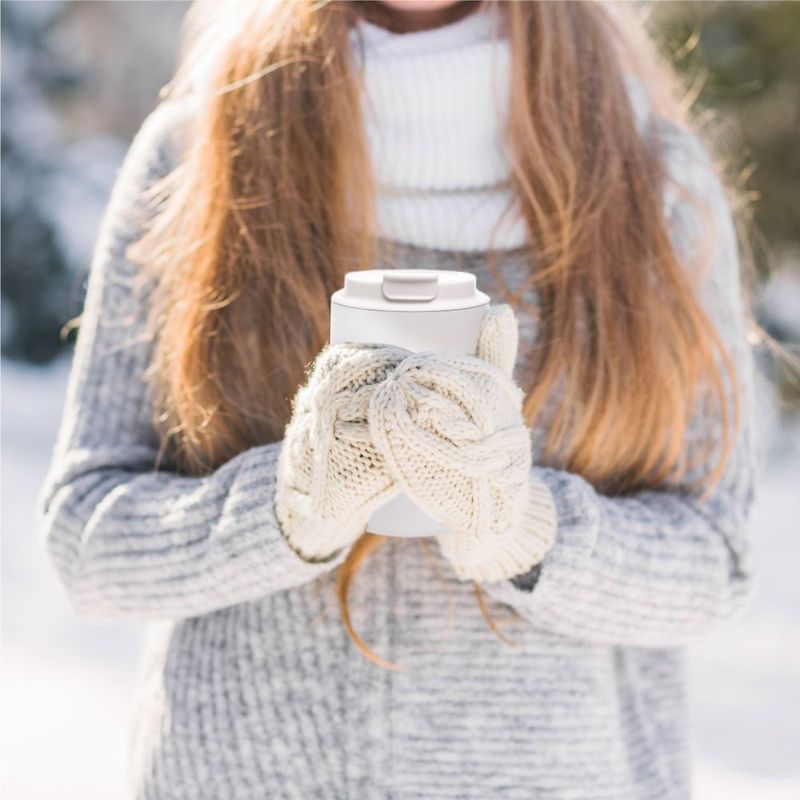 Термокружку з формованим корпусом комфортно тримати в руці. Дно кухля має виїмку, яка не дає виробу ковзати на поверхні.