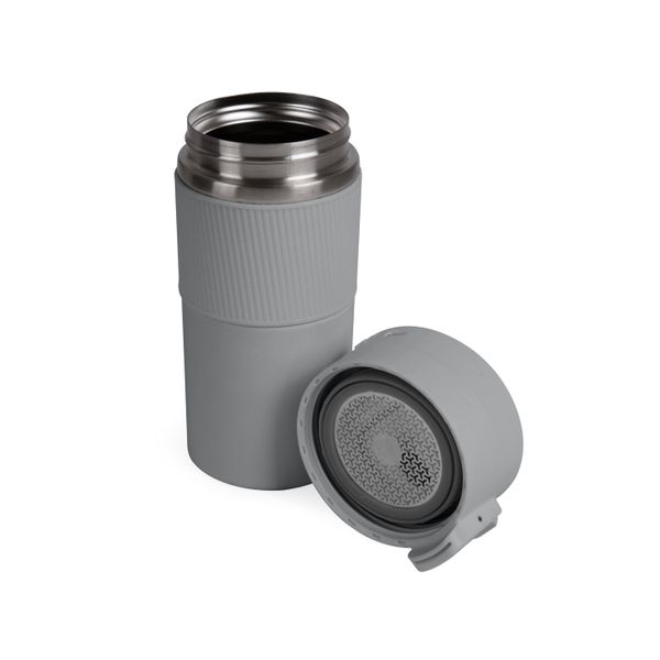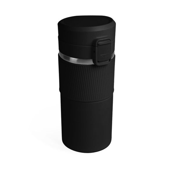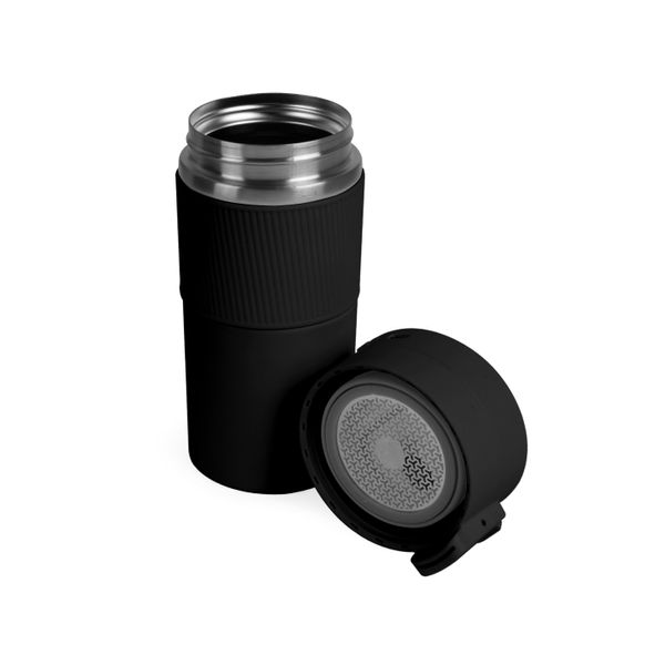 Вакуумна термокружка з нержавіючої сталі, вкрита матовою кольоровою емаллю. Кришка-непроливайка з ситечком, яка при необхідності блокується від випадкового відкривання. Об'єм 370 мл. Висота 18,3 см., діаметр 7,7 см. Підтримує температуру до 6 годин. Упакована в індивідуальну чорну коробку та поліетиленовий пакет. Розмір індивідуальної коробки: 19 х 8 х 8 см.