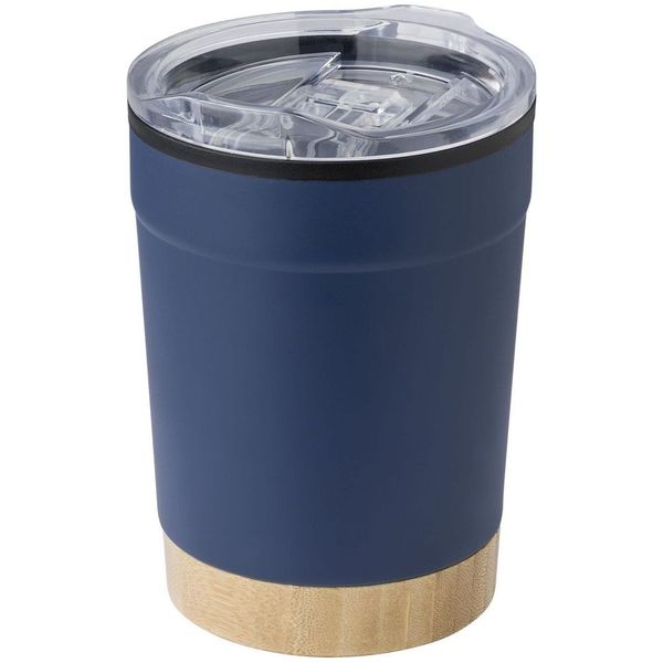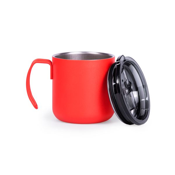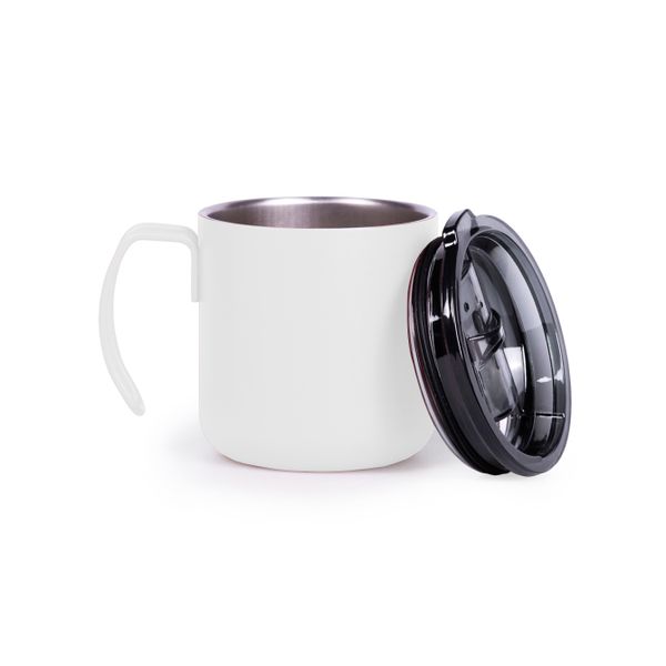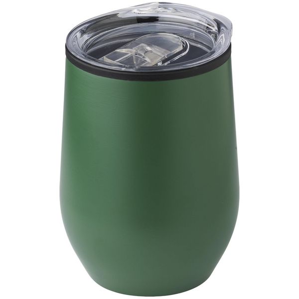 Термочашка з нержавіючої сталі з подвійними стійками, вкрита матовою кольоровою емаллю. Кришка прозора з клапаном. Кришку можна мити в посудомийній машині. Корпус мити тільки вручну, щоб не пошкодити кольорове покриття. Підтримує напій гарячим протягом 6 годин. Висота 8,1 см без кришки, з кришкою 8,6 см, діаметр 8,6 см