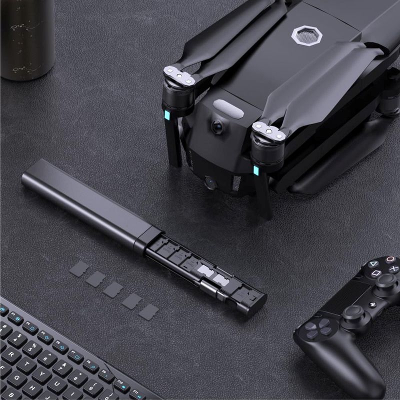 Конструкція контейнера передбачає наявність слотів для зберігання карт. Карти виймаються за допомогою виштовхувального штифта. Контейнер виготовлений з алюмінієвого сплаву та ABS.