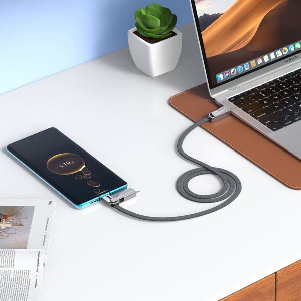 Універсальний кабель 4-в-1 для зарядки гаджетів. Має стандартний USB вхід для підключення живлення та три виходи Lightning + Type-C + Type-C.