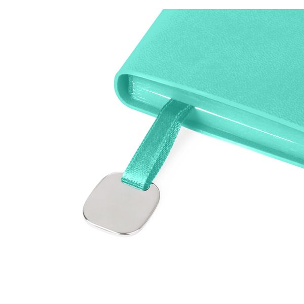 Записна книжка в м’якій обкладинці, з закладкою та металевим елементом. Розмір металевого елементу 17 х 20мм. Кремовий папір в клітинку. Торці пофарбовані у колір обкладинки