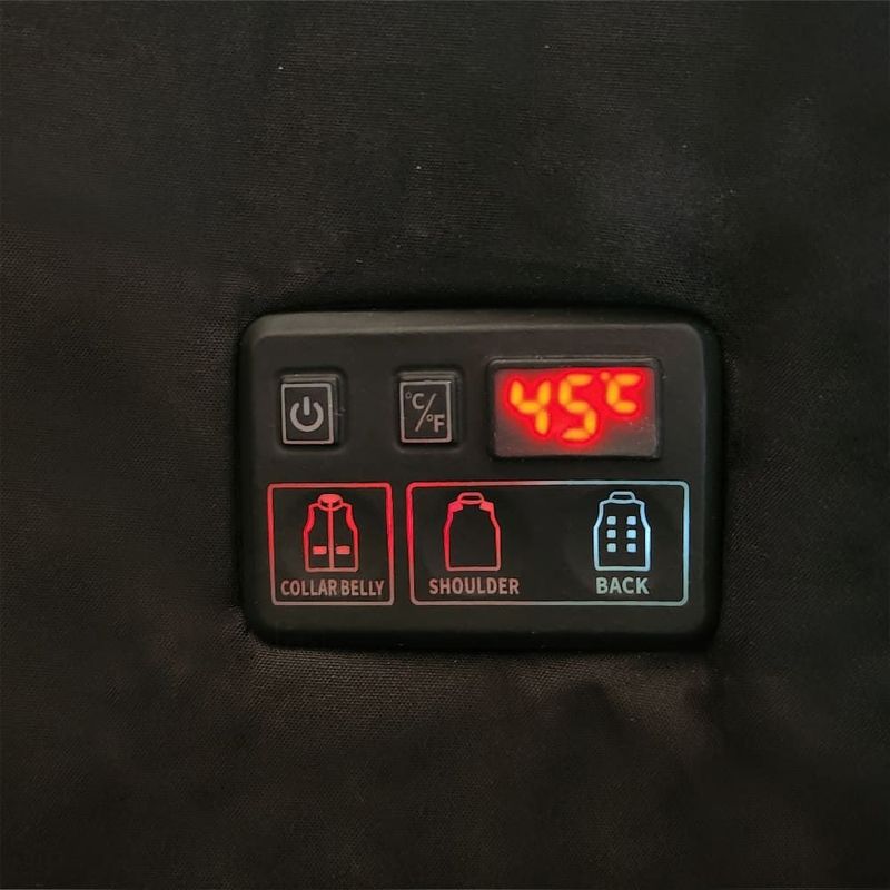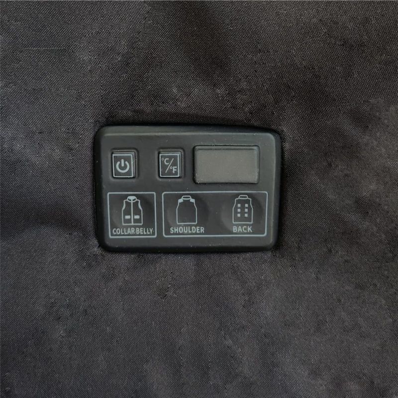 Зліва на грудях прикріплено плаский сенсорний пульт управління обігрівом з інтуїтивно зрозумілими піктограмами. Для вмикання тепла потрібно натиснути й утримувати кнопку протягом 5 секунд, потім необхідно налаштувати бажаний режим. Температура відображається на маленькому дисплею.